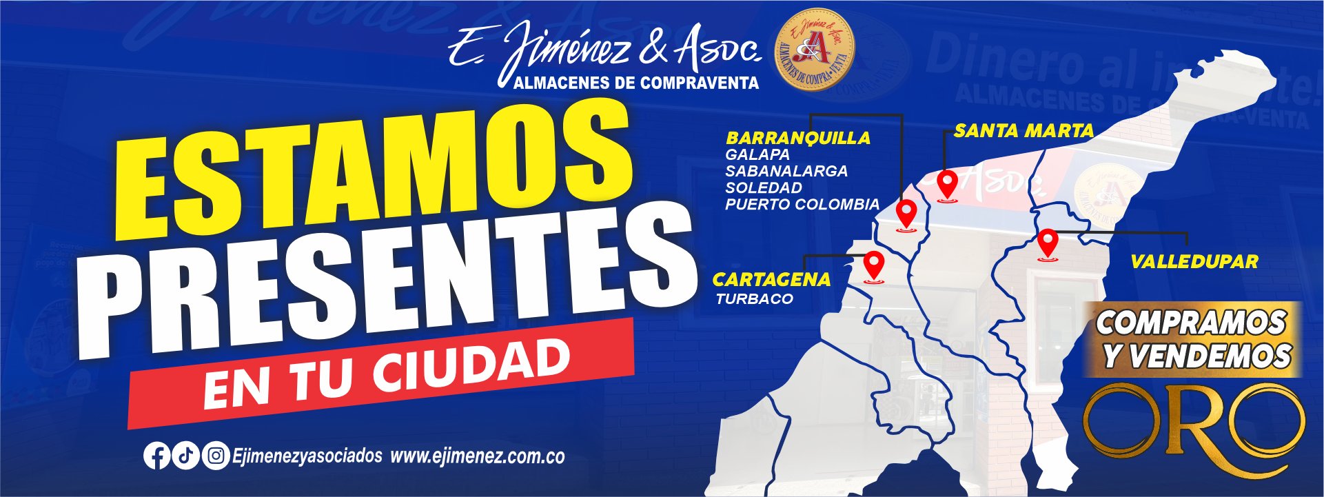 Con más de medio siglo siendo pioneros en almacenes de compra y venta, en E Jiménez & Asociados conocemos cada rincón de la región y trabajamos con pasión para hacer realidad los sueños de nuestros clientes en Barranquilla, Cartagena, Santa Marta, Valledupar, Turbaco, Galapa, Sabanalarga, Puerto Colombia y Soledad.